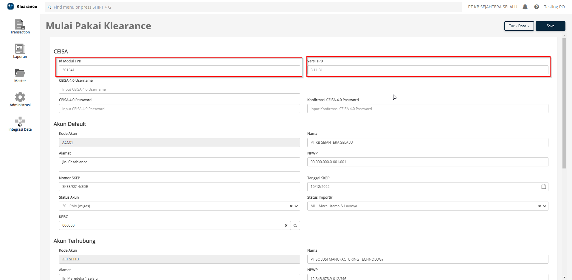 Pastikan Akun Default sudah sesuai dengan informasi about pada TPB CEISA, dan untuk Akun Terhubung sudah terisi dengan Akun Customer Bapak Ibu