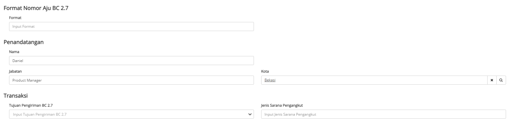 Untuk Format Aju bisa kosongkan saja, karena sistem yang nanti akan membuatkan format ajunya, menggunakan informasi Id Modul & KPBC yang sudah diisikan pada Akun Default